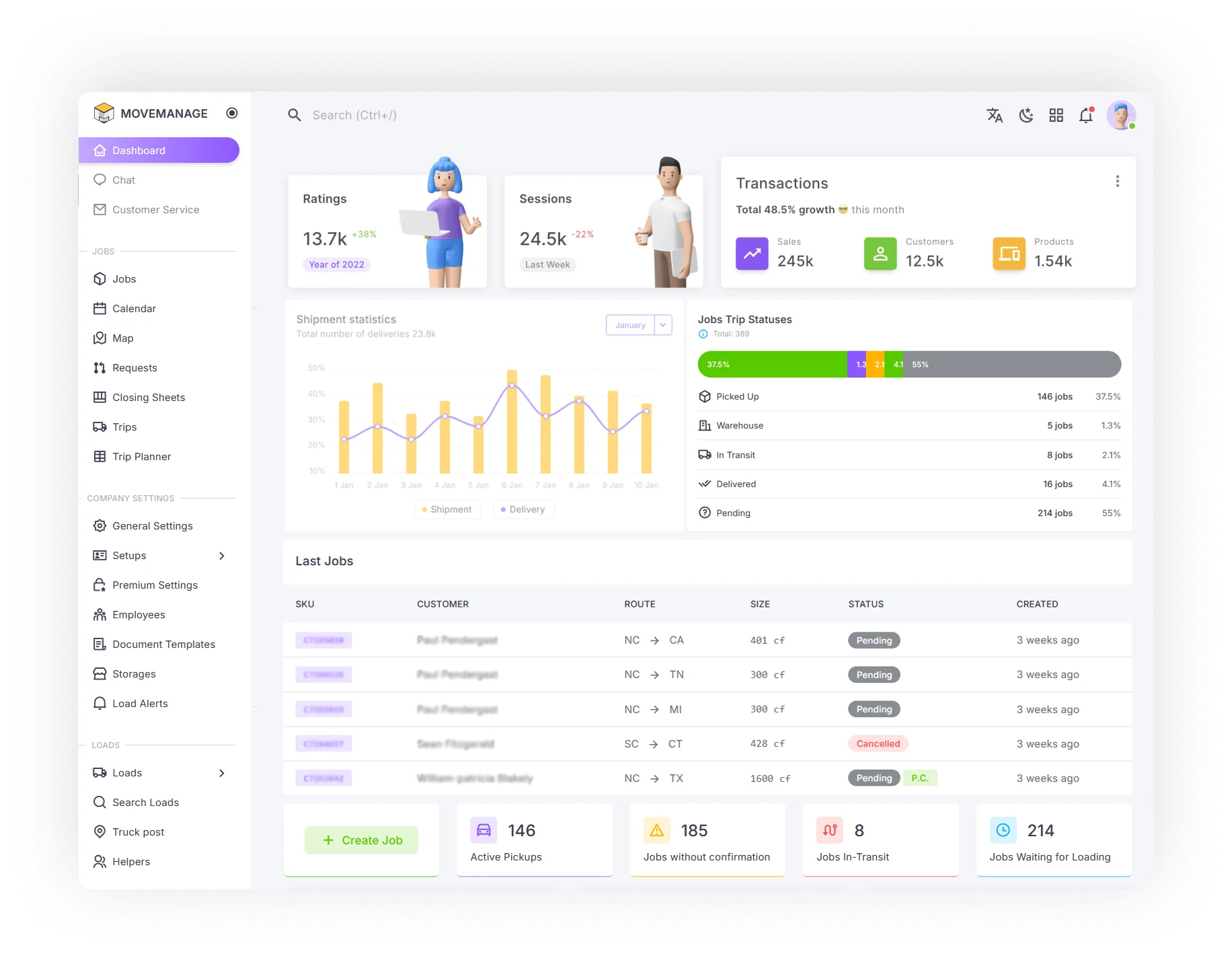 With intuitive tools like the "My Jobs" section, brokers can efficiently manage their jobs, keeping track of important details such as pickup and delivery dates, job statuses, and customer information, ensuring smooth operations and excellent customer service.